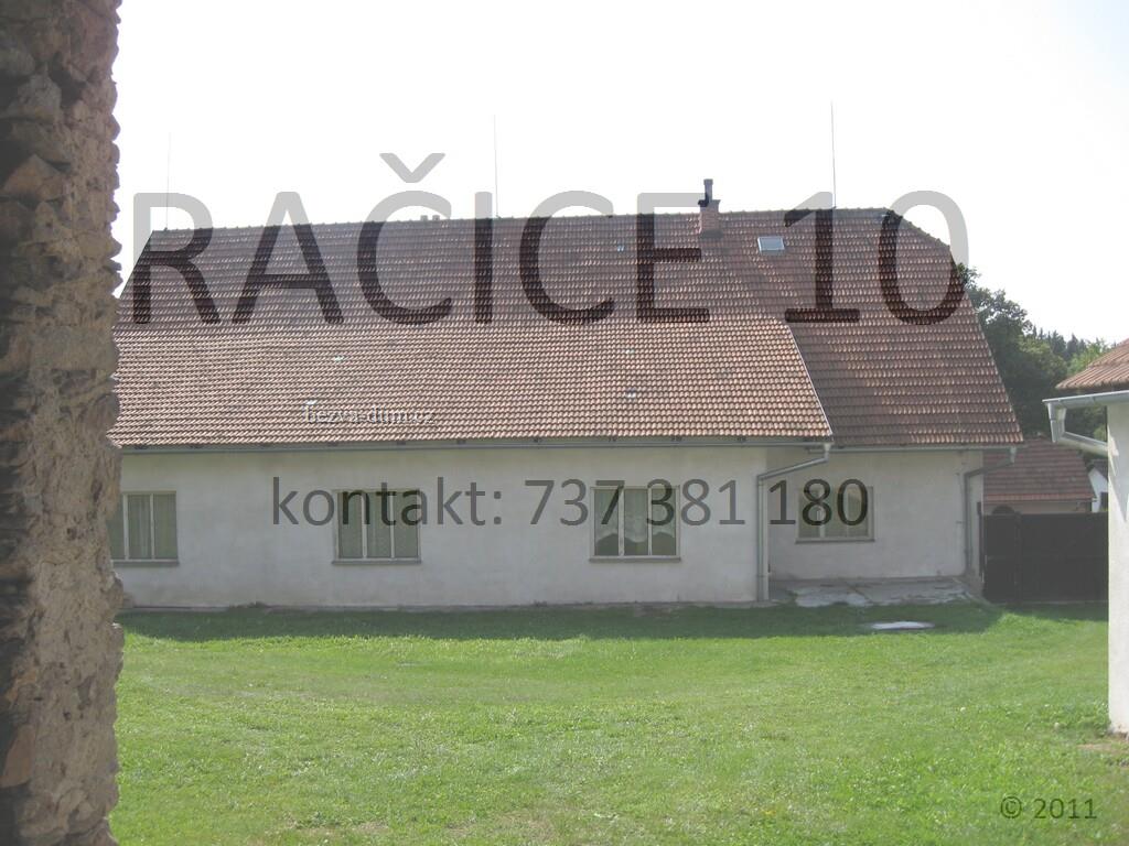 Prodám velký rodinný dům v středu malé klidné obce v Račicích u Bobrové - 10km od Nového Města na Moravě. Zastavěná plocha s nádvořím 1411m2. Uzavřený dvůr 762m2. Obytný dům je vhodný k okamžitému nastěhování, využitelný k trvalému bydlení (dvougenerační dům) a podnikání, popřípadě hospodaření. Dům, stodola i dvůr nabízí velké skladovací prostory.Domovní budova je v přízemí rozdělena na dvě samostatné bytové jednotky. Jeden byt má vchod z předzahrádky směřující na jih. Kolem předzahrádky je nový kamenný taras. Okna místností směřují na jih směrem do obce. Druhý byt má vchod ze dvora, okna směřují na jih, západ a okno z kuchyně do dvora. Byty jsou propojeny chodbou, ze které vede schodiště na rozsáhlou dvoupatrovou půdu. 1.byt 2+1: vstupní chodba ze dvora, předsíň,schodiště do sklepa z předsíně, koupelna s vanou,samostatné WC, obytná velká kuchyň s kamny na tuhá paliva, 2x pokoj.Tento byt je částečně podsklepený. 2. byt 2 3+1: vstupní chodba z předzahrádky a také dalším samostatným vchodem ze dvora, z chodby schodiště na půdu, koupelna s vanou,samostatné WC, prostorná komora, obytná kuchyň s kamny, 2x pokoj s okny do předzahrádky, další velká místnost s oknem do dvora a sklad s oknem do dvora. Půda je rozdělena do dvou pater, je velmi prostorná a nabízí možnost vybudování podkrovních místností v obou patrech půdy. Střecha tašková ve velmi dobrém stavu. Objekt je napojen na inženýrské sítě: elektřina, voda, kanalizace, před domem je přípojka na plyn. V současnosti lokální vytápění na tuhá paliva. Objekt možno využít k bydlení s podnikáním. Voda: Zdroj pitné vody dálkový vodovod. Na dvoře blízko vchodu do domu je také studna. Odpad: Kanalizační přípojka, jímka na dvoře. Elektřina: 400V Garáž /dílna 7,30 x 6,30 m Má pouze jedny vrata pro vjezd pro jedno auto, ale po výměně vrat nabízí dostatek prostoru pro zaparkování dvou aut. Nad garáží je prostorná půda, kterou lze využít jako skladní prostor. Stodola 27,9 x 10,76 m Střecha dobrá, stodola nabízí dostatek prostoru pro uskladnění věcí a ochranu před deštěm. Stodola je vhodná pro chov hospodářských zvířat. Pod stodolou je v jedné části prostorný sklep, který se kdysi využíval pro skladování brambor. Zahrada - Po dohodě možnost odkoupení zahrady za stodolou. Doprava: Autobus, 10 spojů denně.